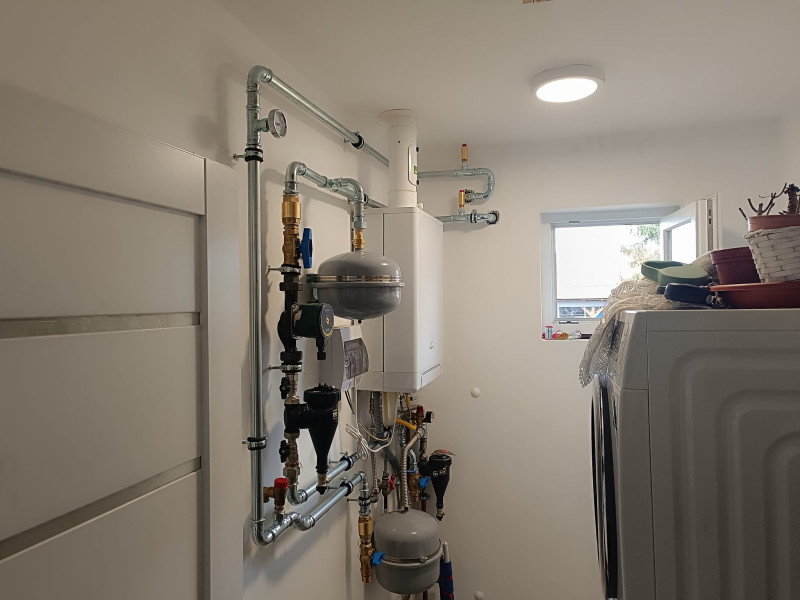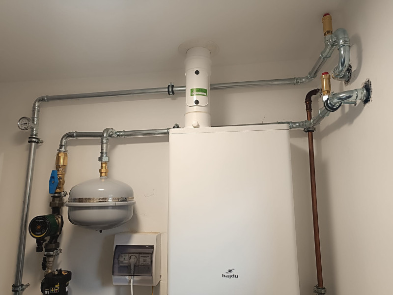 Meglévő fűtési rendszerrel össze kötött monoblokkos hőszivattyú, a kedvező fűtési költség érdekében.