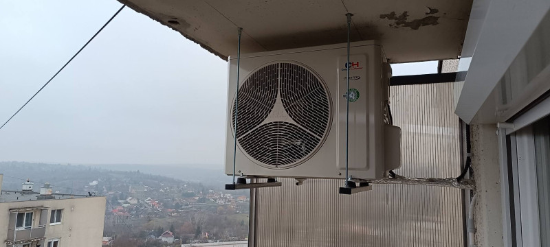 A nappaliba telepített készülék kültéri egységét függesztve szereltük , hogy a legtöbb szabad hely maradjon a teraszon.